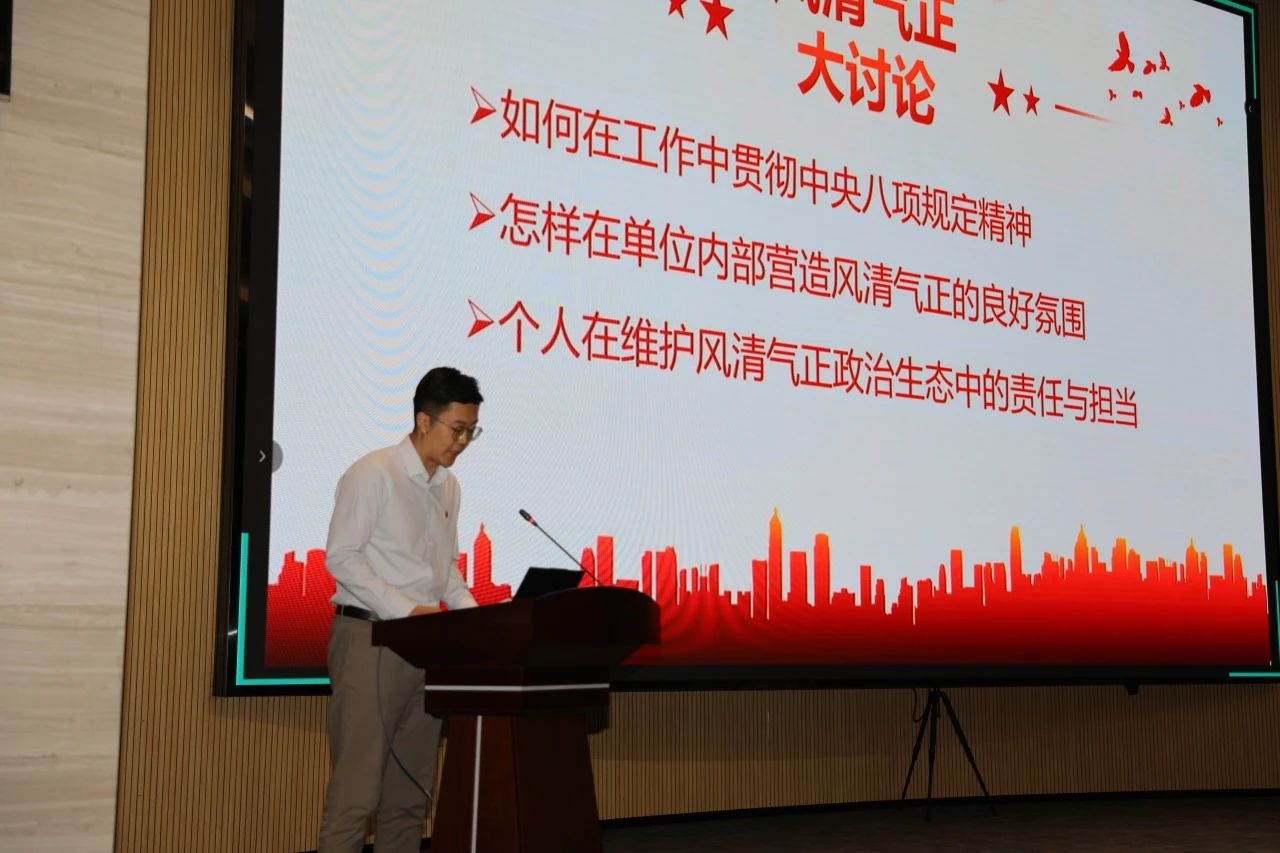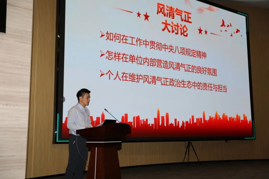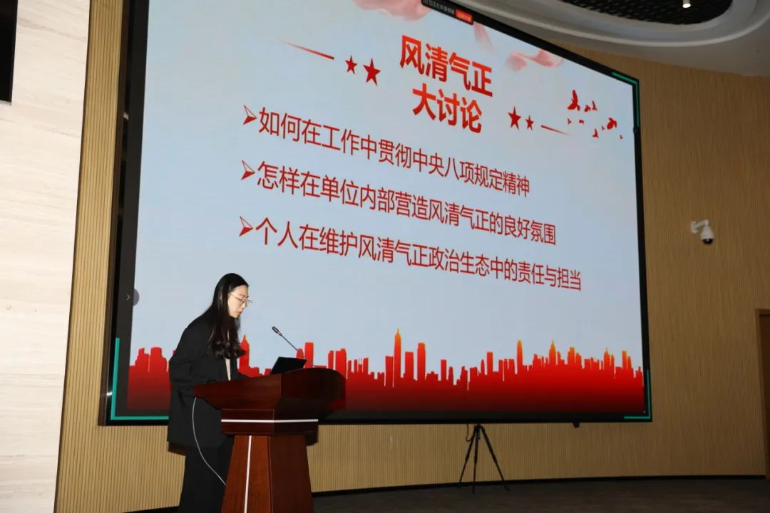 团委书记邹佳宸围绕学习研究、组织建设、青年关爱、志愿服务等方面做青年工作汇报,并着重就团委开展深入贯彻中央八项规定精神学习教育情况进行介绍。随后,公司开展“风清气正大讨论”,多位青年代表以“如何在工作中贯彻中央八项规定”、“怎样在单位内部营造风清气正的良好氛围”、“个人在维护风清气正政治生态中的责任与担当”等为题进行研讨交流。