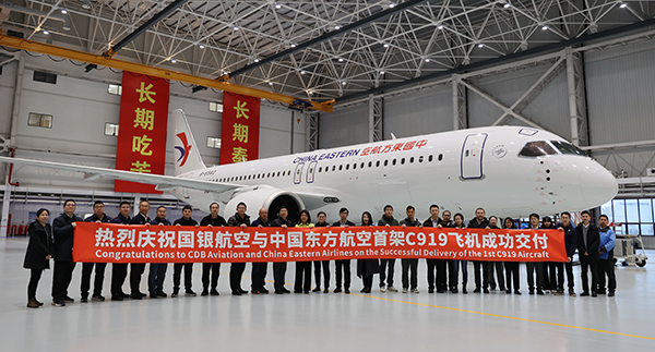 C919飞机是我国首款按照国际通行适航标准自行研制、拥有自主知识产权的喷气式干线客机。2023年5月,中国东航率先开启C919的首次商业飞行。此次国银金租与中国东航、中国商飞的紧密合作,是以金融租赁方式保障我国商用飞机顺利交付并投入商业运营的重要成果,为其后续规模化运营和市场发展提供金融支持。